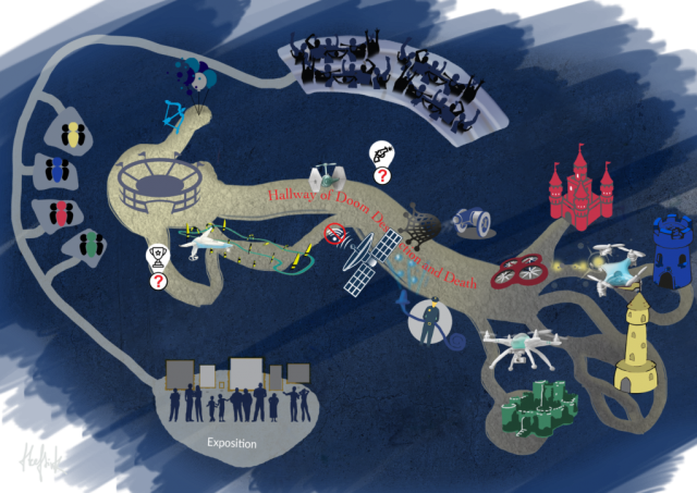 The first edition of the anti-drone competition DroneClash promises to be a spectacular event. In a hangar at a former air base nearby The Hague, drones will fly through the Hall of Doom Destruction and Death, trying to protect their Queen Drone and to take out the other, hostile queens. It will be like a 3D Robot Wars. But apart from a great show and lots of fun, DroneClash serves a scientific goal: to stimulate research on counter-drone technology.