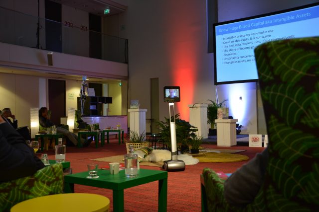 It was actually a robot that kicked-off the second day. Professor Eric Bartelsman spoke from Florence about the social-economic impact of robotics, using a telepresence robot. The technology worked perfectly, although Bartelsman wasn’t able to accept the present from moderator Arthur de Crook. “If I could, I would have bowed.”