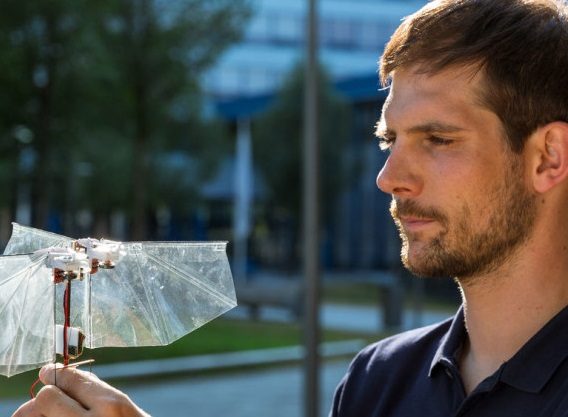 The MAVLab has been developing insect-inspired flying robots for over 10 years within the DelFly project. The MAVLab scientific leader, Prof. Guido de Croon, says: “Insect-inspired drones have a high potential for novel applications, as they are light-weight, safe around humans and are able to fly more efficiently than more traditional drone designs, especially at smaller scales. However, until now, these flying robots had not realised this potential since they were either not agile enough – such as our DelFly II – or they required an overly complex manufacturing process.”