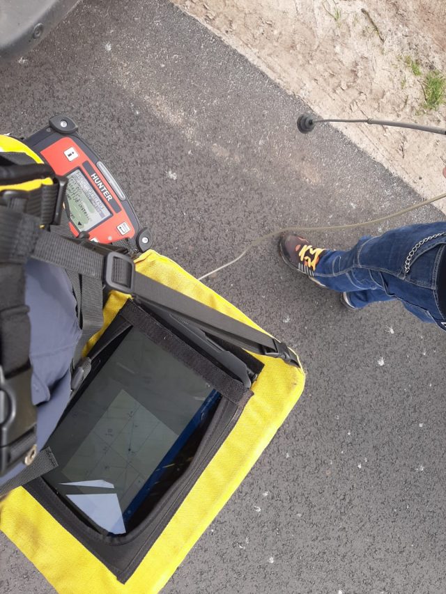The team slowly walked on, looking for more leaks. When they bumped into any kind of obstacle, they had to lift the device over it themselves. They also pushed the big device while constantly looking down on their tablet. After a full day of leak detection, every member of the team could feel it in their shoulders.